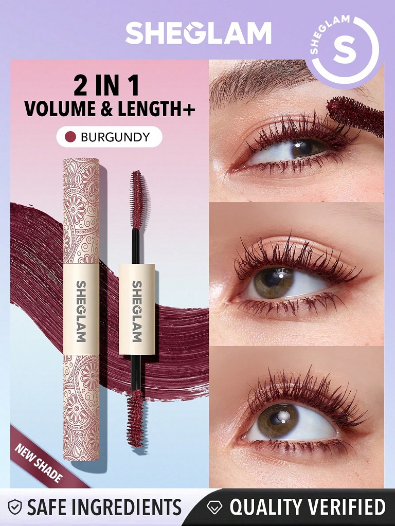 ریمل حجم دهنده و بلند کننده دو طرفه و ضد آب شیگلم Sheglam مدل All-In-One رنگ قرمز بورگاندی