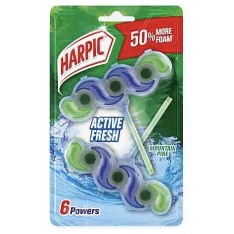 قرص توالت فرنگی ۶ کاره Harpic Mountain Pine یک شوینده و خوشبوکننده آویزدار است که داخل کاسه توالت فرنگی نصب می‌شود. با هر بار تخلیه آب، مواد فعال آن آزاد شده و عملیات شستشو، ضدعفونی و خوشبوکنندگی را انجام می‌دهد.